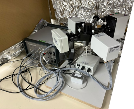 DUAL-PAM-100は、クロロフィル蛍光測定により、PSIIの量子収率や電子伝達効率を評価できる光合成測定装置です。さらにクロロフィル蛍光(PSII)に加え、P700吸光変化(PSI)も同時に測定できる点が大きな特長で、光化学反応の効率や電子伝達のバランスを評価できます。また、NAD(P)H蛍光ユニットを用いることでNAD(P)Hの増減をリアルタイムで測定できます。光条件の制御や多様なプロトコル設定が可能で、シアノバクテリア、藻類、高等植物など幅広い光合成生物が測定対象です。環境応答解析や遺伝子改変株の機能評価などができる共通機器として整備しています。